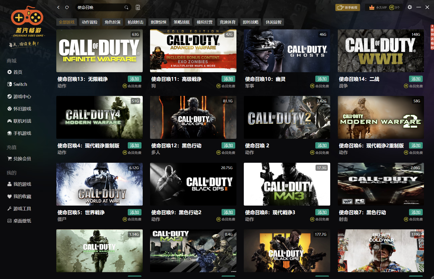 很多大型3D游戏,蜘蛛侠,极速地平线,枪战游戏《使命召唤》,还有经典游戏《CS》,多版本手机游戏《植物大战僵尸》